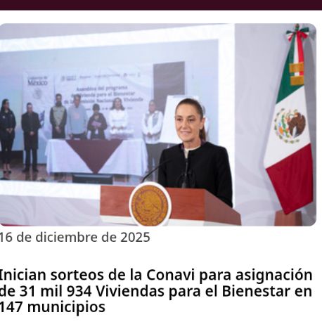 "Está muy apresurado el Programa de Vivienda para el Bienestar (...) todos los miércoles, además de los fines de semana que vamos de gira por todo el país, vamos a tener una entrega de vivienda", afirma la mandataria. Este 2026 nos comprometernos con el pueblo
